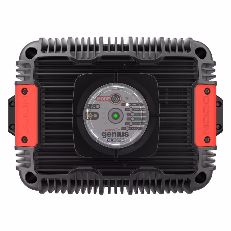 NOCO GX3626EU är en industriell batteriladdare på 36 V och 26 A. Utvecklad för professionell och kontinuerlig drift.