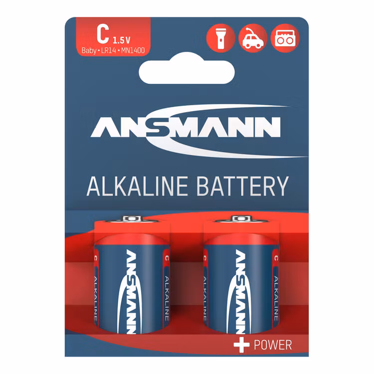 ANSMANN Red Line Alkaline C‑batterier 1,5 V i 2‑pack. Pålitlig energi för vardagens apparater med högre strömbehov.