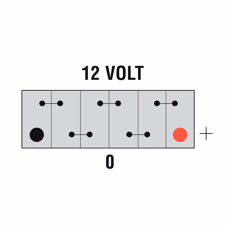 Startbatteri från Nordmax är utformat med den senaste AGM-tekniken, vilket innebär att batteriets elektrolyt är absorberad i en glasfibermatta. Detta ger överlä