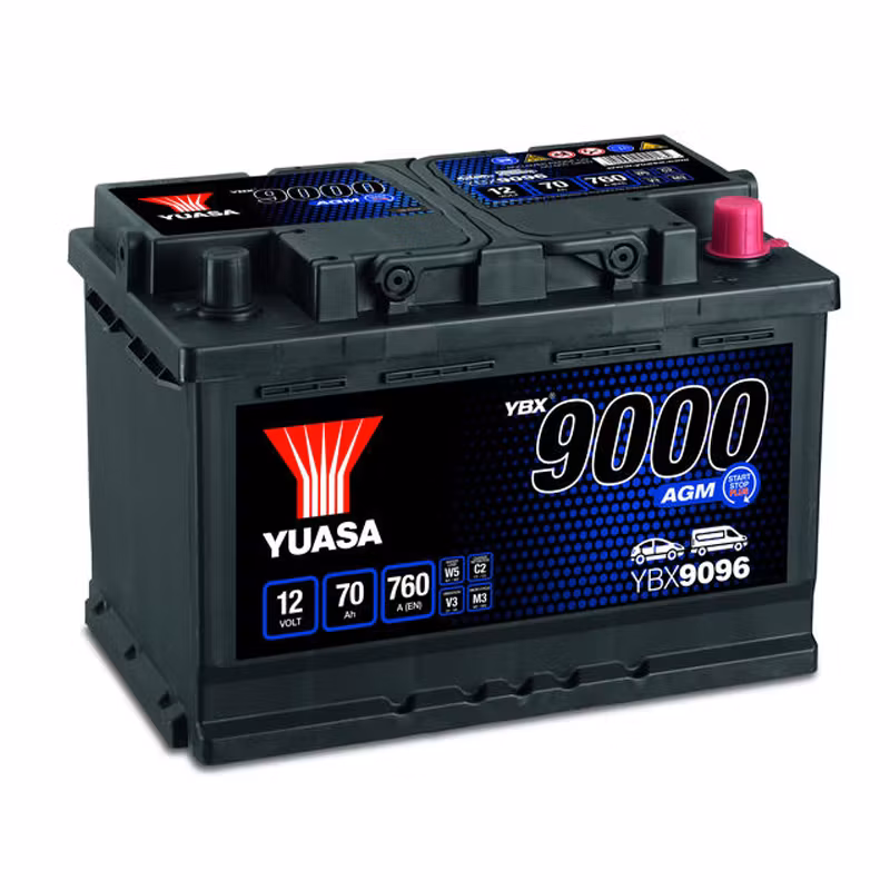Yuasa 9000-serie med AGM-teknik består av batterier med kalcium/kalcium-teknik och är nästa steg i utvecklingen av startbatterier. De har utvecklats för lyxbilar och fordon med den senaste bränslebesparingstekniken "Start-stopp-system". Den absorberande glasfibermattan innebär att Yuasa AGM-batterier ger fyra gånger mer cyklisk hållbarhet än konventionella startbatterier. Den största nyttan för användaren är den ökade livslängden som gör det möjligt med upp till 360 000 motorstarter, tillräckligt för bilens livslängd.