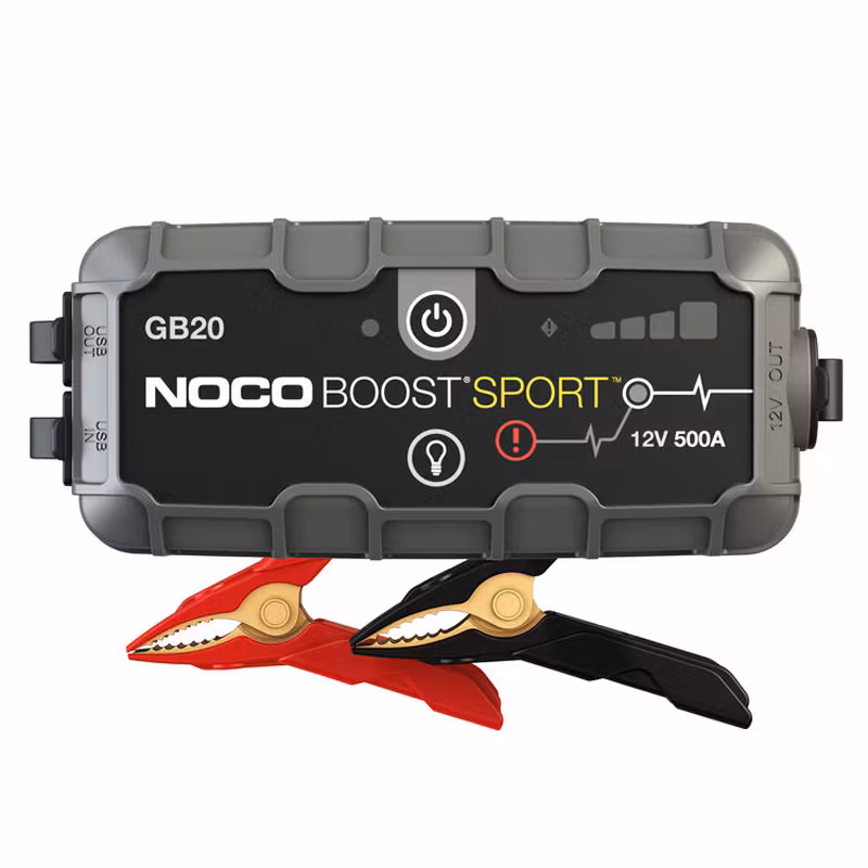 NOCO GB20 är en kompakt litium‑startbooster på 12 V med upp till 500 A startström. Perfekt för snabb och säker starthjälp till bil.